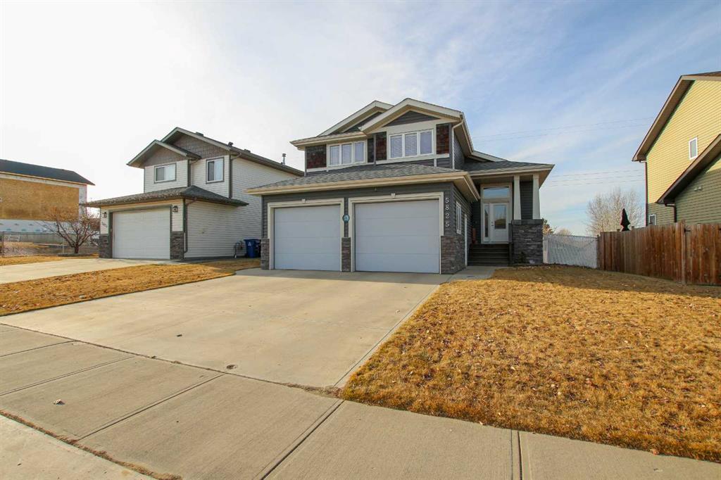FULLY DEVELOPED 5 BEDROOM, 3 BATHROOM MODIFIED BI-LEVEL ~ WALKOUT BASEMENT ~ BACKING ONTO A WALKING PATH & POND ~ SEPARATE SIDE ENTRY ~ Covered front veranda leads to a welcoming foyer with high ceilings ~ The open concept main living space is complemented by soaring vaulted ceilings and large windows that fill the space with natural light and have views of the natural space just behind ~ The kitchen offers a functional layout with plenty of dark stained cabinets, full tile backsplash, tons of granite counter space including a massive island with pendant lights above, and a walk in pantry ~ Easily host large gatherings in the dining space that's surrounded by floor to ceiling windows, and garden door access to the sunny west facing deck with more great views ~ The spacious living room features a cozy gas fireplace with stacked stone surround, mantle and space for your TV above ~ 2 main floor bedrooms are both a generous size with ample closet space ~ 4 piece main bathroom has an oversized vanity and a linen closet ~ The private primary suite is tucked away on it's own level and features soaring vaulted ceilings, a spa like ensuite with a soaker tub and separate walk in shower, a large walk in close, and additional storage space ~ Lower level mud room just off the garage has large windows and offers a second, separate entry on the side of the house with access to the basement with conveniently located laundry and a large storage just at the bottom of the stairs (second laundry hook ups on the main level) ~ The fully finished basement features high ceilings, large above grade windows, built in speakers and operational in floor heat ~ Large L-shaped family room with plumbing roughed in for a wet bar has plenty space for a media area and games tables ~ Garden door from the family room walks out to a covered concrete patio with wiring for a hot tub ~ Two basement bedrooms are located adjacent to a 4 piece bathroom and linen closet ~ 25' L x 24' W double attached garage is insulated, finished with painted drywall, has built in shelving, two overhead doors and a man door leading to the front yard ~ The backyard is landscaped, has a fire pit, garden shed, and is fully fenced with direct access to the walking trails and natural reserve just behind ~ Easy access to parks, playgrounds, schools, and shopping ~ Pride of ownership is evident in this well cared for home!